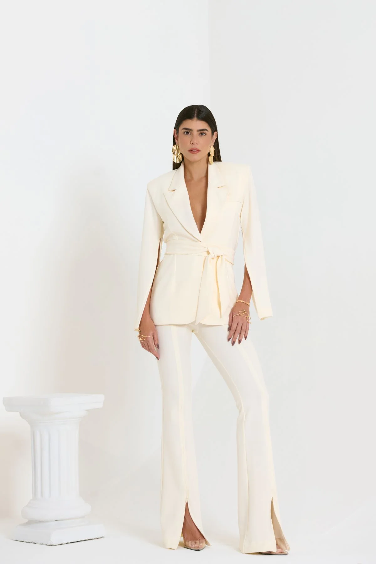 Conjunto Calça Fabiola é a união perfeita entre sofisticação e conforto. Confeccionado em scuba crepe tinto, oferece um visual refinado com ótimo caimento. O blazer estruturado com ombreiras marca a silhueta com imponência, enquanto a calça flare ajustada modela o corpo com conforto e estilo. Um look poderoso para quem quer se destacar com classe.