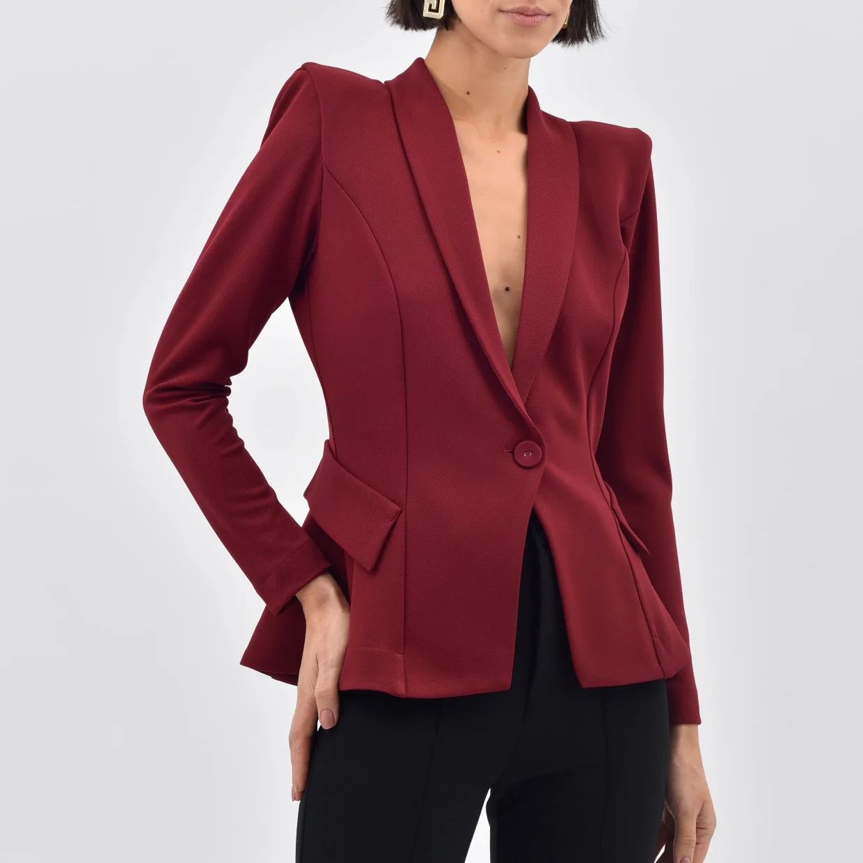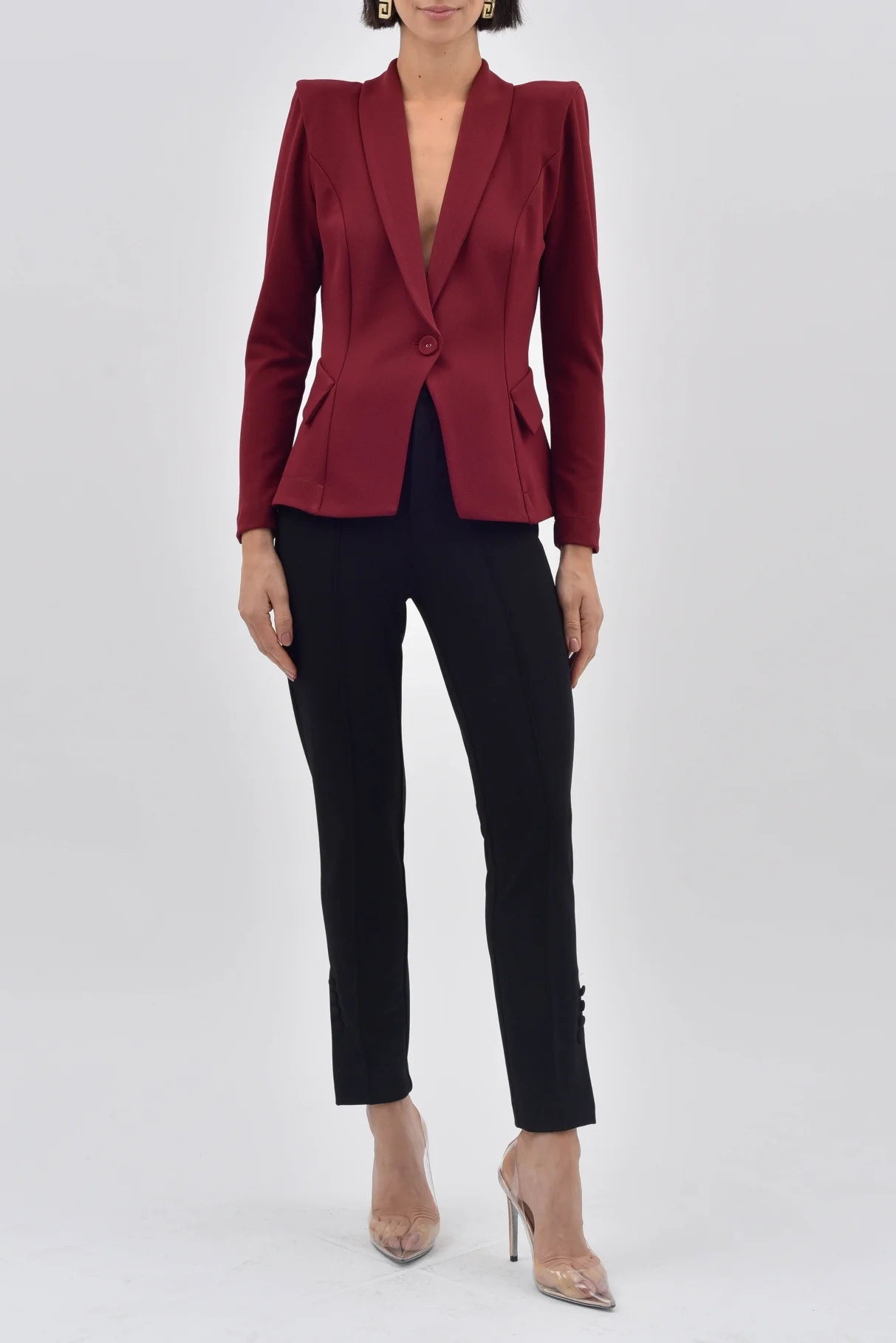 Fechamento: Único botão, adicionando um toque de modernidade.